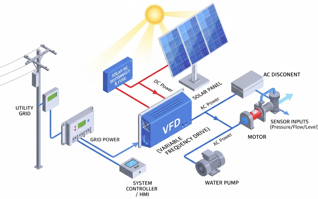 VFD systems regulate motor speed by adjusting frequency and voltage. Perfect for tube wells, agricultural pumps, and turbines, VFDs improve energy efficiency and optimize water flow in rural and agricultural applications.